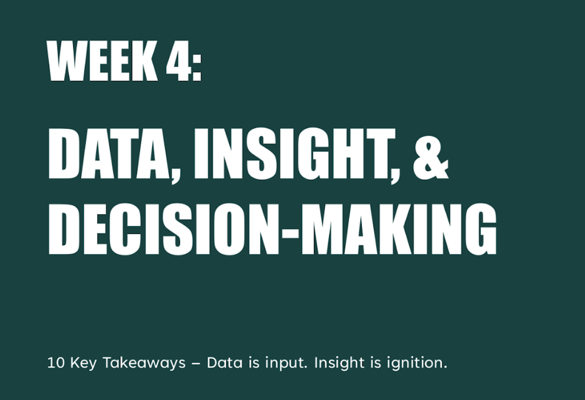 Following on from Weeks 1-3, here are the 10 Key Takeaways from Week 4, which focused on data, insight, and decision-making.