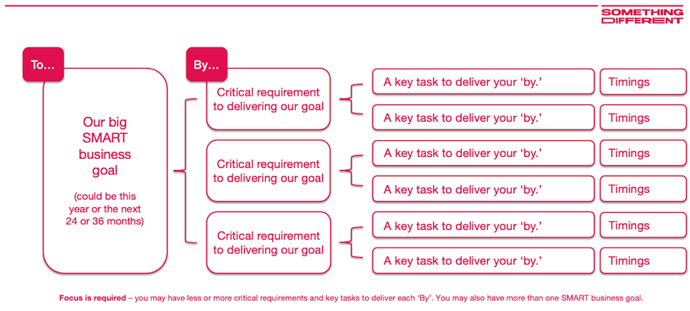 Focus can now be given to defining your 'By'. We want to (insert SMART goal), by..... doing what?