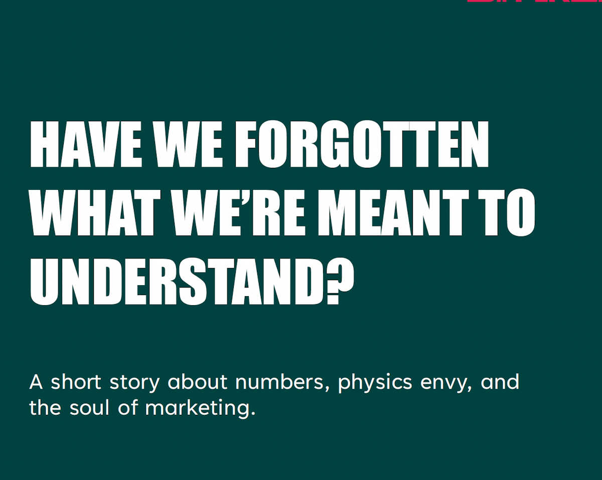 Somewhere along the way, marketing swapped gut instinct for analytics. We used to chase insight, now we chase attribution windows.